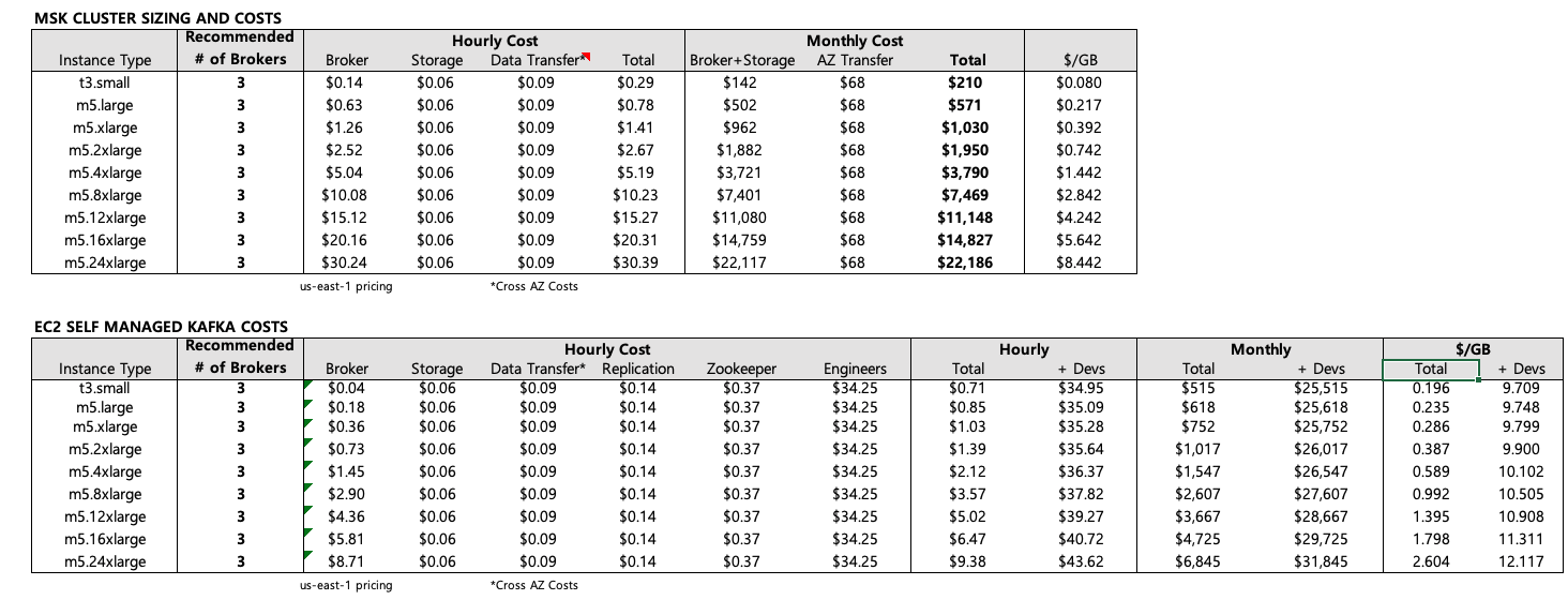 Amazon MSK를 통해 일일 2.50 USD 미만의 요금으로 시작할 수 있습니다. 고객은 일반적으로 모든 비용을 포함하여 수집된 GB당 0.05 USD 및 0.07 USD를 지불합니다. 이는 다른 관리형 공급자 요금의 1/13에 해당합니다. 현재 요금을 확인하려면 Amazon MSK 요금 페이지로 이동하고 Amazon MSK 클러스터의 크기를 적절하게 조정하는 방법에 대해 알아보려면 Amazon MSK 모범 사례 페이지로 이동하세요.